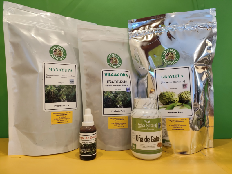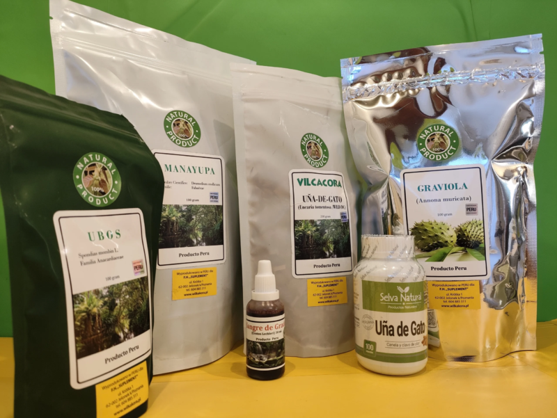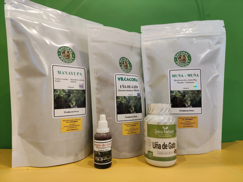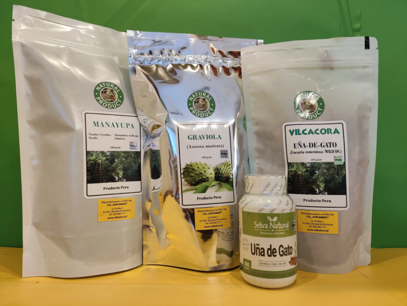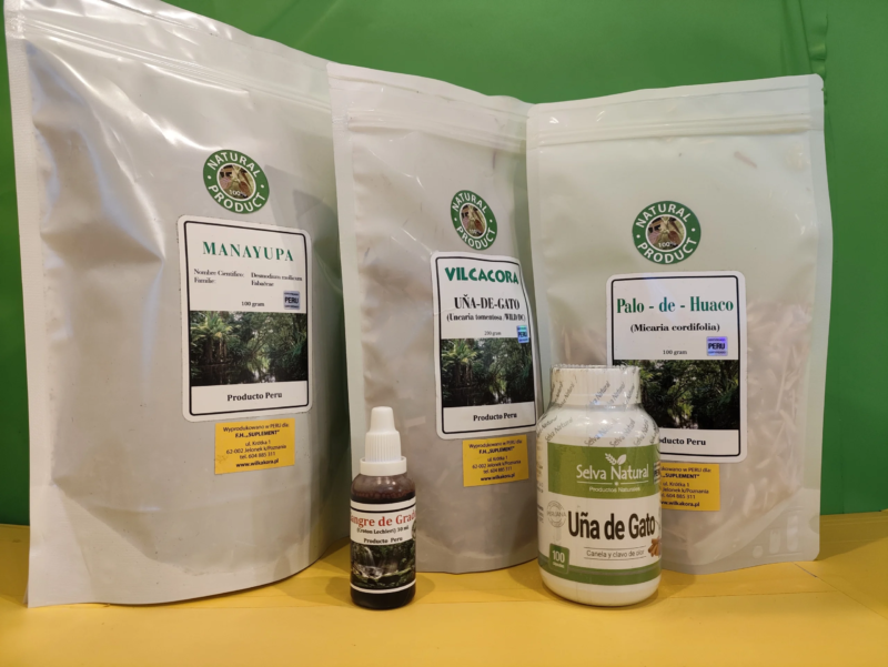 Dlaczego klienci interesują się naszymi produktami? Odpowiedź jest prosta, mają możliwość zobaczyć i nabyć oryginalne zioła i suplementy z Peru! Najczęściej szukają najbardziej znane zioło w naszym kraju o nazwie „VILCACORA” (to polska nazwa) lub „koci pazur”. W Peru oryginalne zioła Vilcacory mają nazwę „Uńa de Gato”. W opracowanych Kuracjach te zioła występują przeważnie w dużych dawkach: jako wywar 3 szklanki dziennie z równoczesnym ekstraktem w kapsułkach- Uńa de Gato (patrz dział >>BADANIA<<) oraz z innymi ziołami z Peru – skojarzonymi.