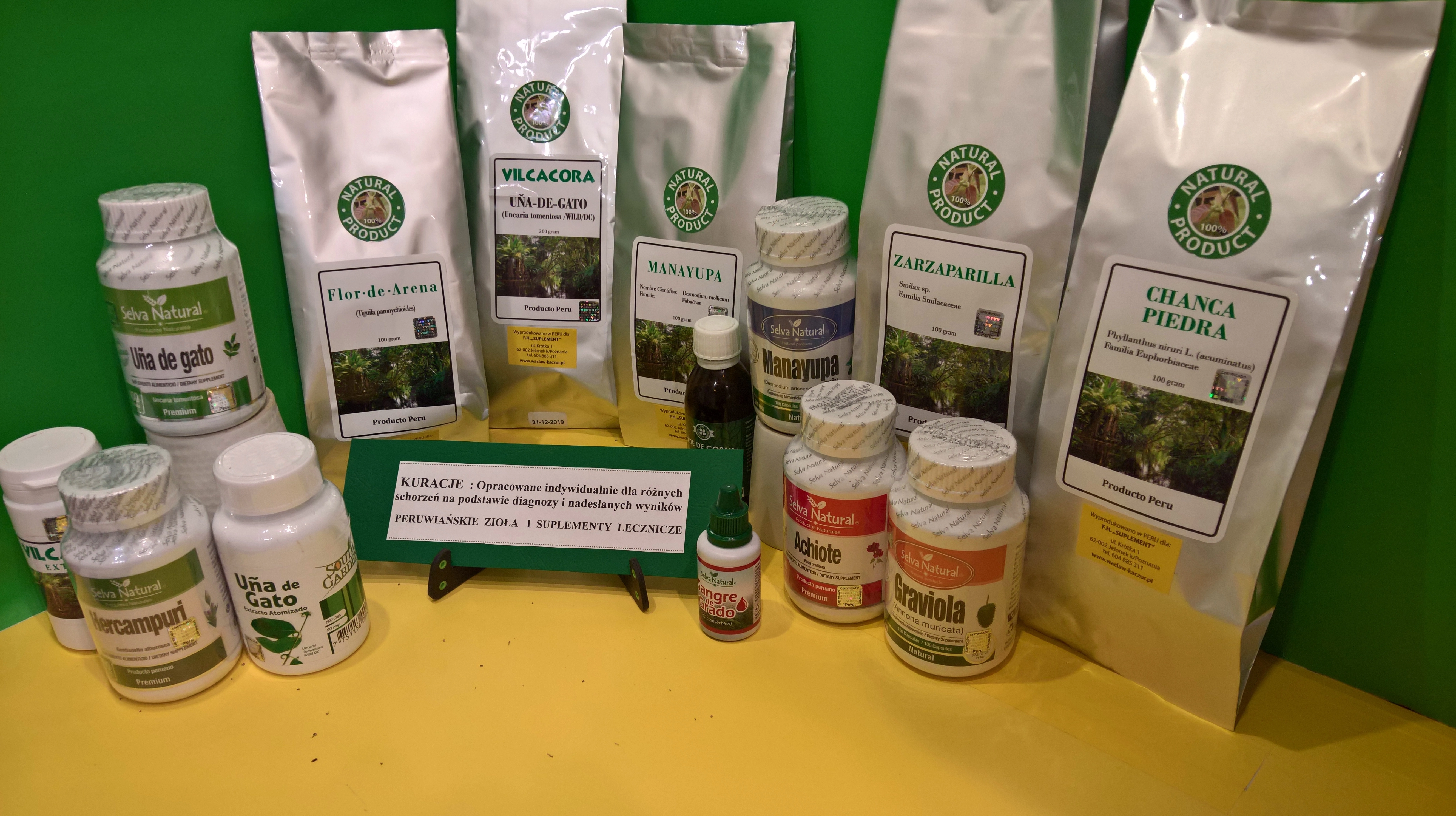 Uwaga: na zdjęciu pokazano wiele preparatów z Peru. Na tej bazie ziół można dopasować każdą kurację indywidualną na różne schorzenia np. cukrzycę, nadciśnienie i inne. Opracowany przez naukowców „Wykaz kuracji” zawiera 44 pozycje. Należy skontaktować się telefonicznie pod nr.tel. 604 885 311.